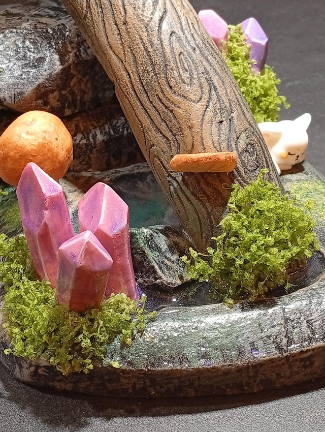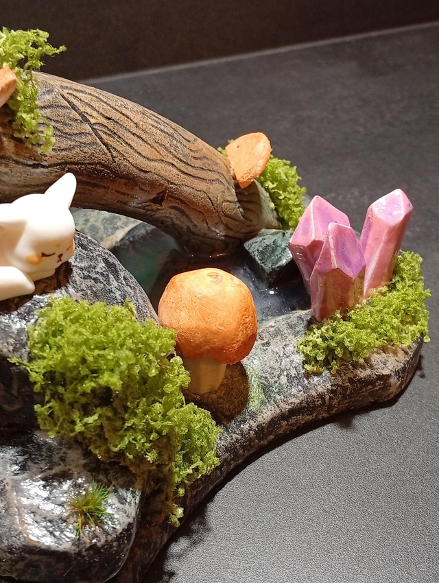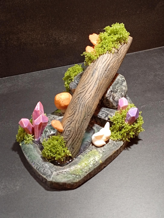 Matériaux : XPS , résine époxy, peinture acrylique, vernis, végétation décorative.
